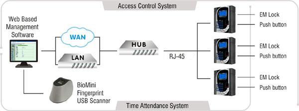 Internet mode: Master/Slave mode provided for multi-doors, multi points ( eg . between headquarter and branch offices) Time and Attendance control with standard Web management software.